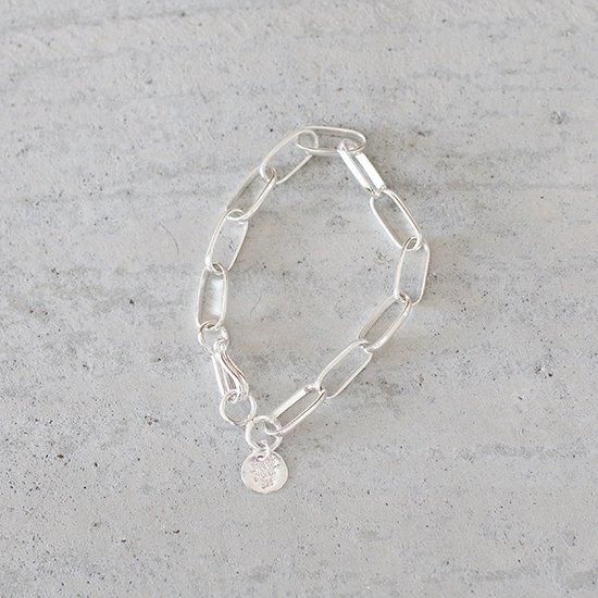 インゴットシルバーで製作されたブレスレット。シルバーを溶かすところから全て手作りです。2段階サイズが調節可能です。単体での着用はもちろん、重ね付けもおすすめです。専用袋付き。