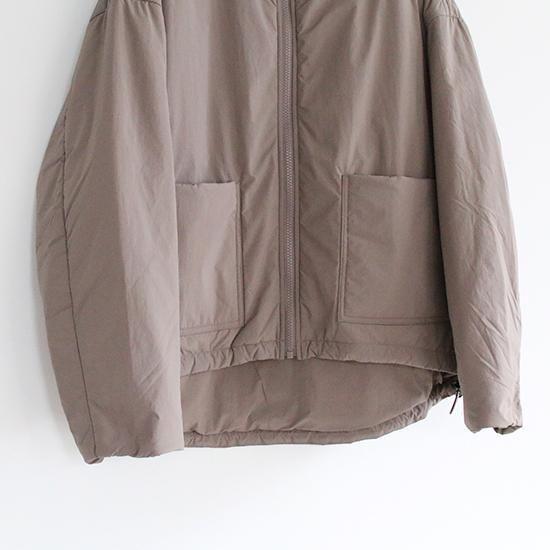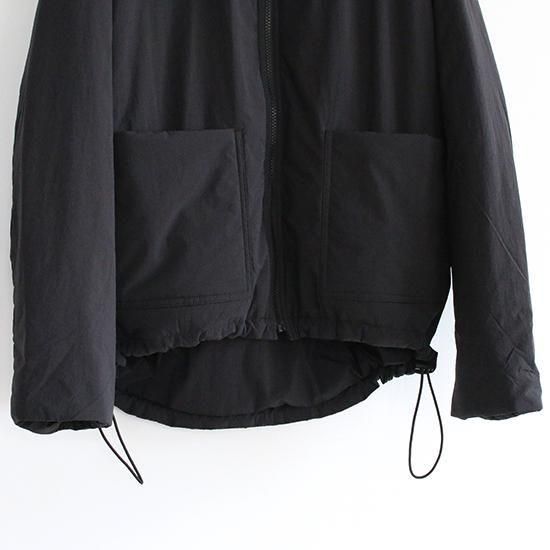 遠赤外線効果で効率良くふく射をして繊維を暖めて保温する “発熱中綿“を使用したブルゾン。軽量でありながらも暖かいのが魅力です。裾のドローコードなど、機能性も兼ね備えています。コーディネートに合わせてドローコードでお好みの着丈にアレンジできます。表面はステッチ無しのキルティング仕様。表地のナイロンは、帯電防止、防汚、撥水の効果もあります。両側にパッチポケットが施されています。